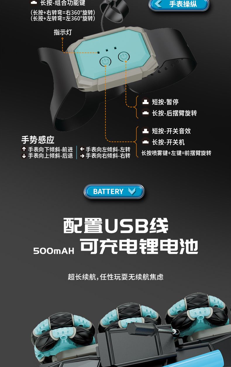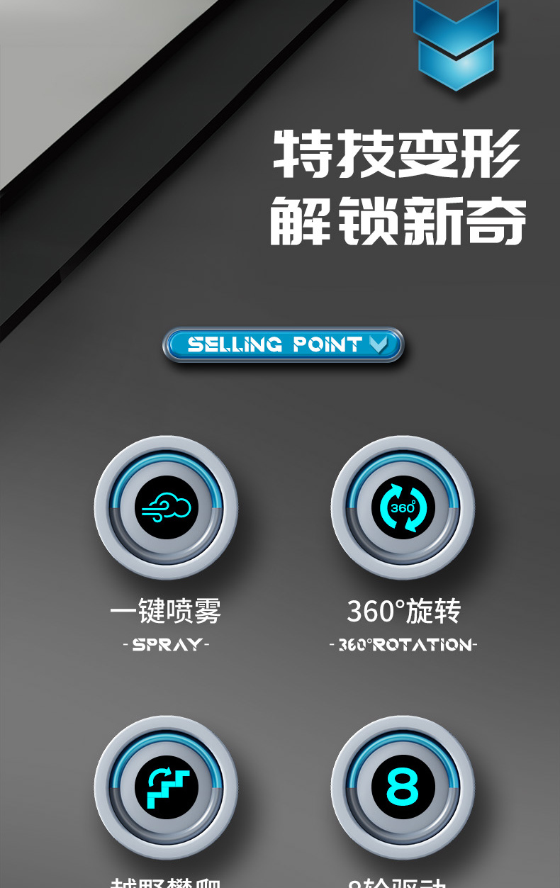 CV8818-58A 攀爬/翻滚声光音乐特技车 漂移麦克纳姆轮系列