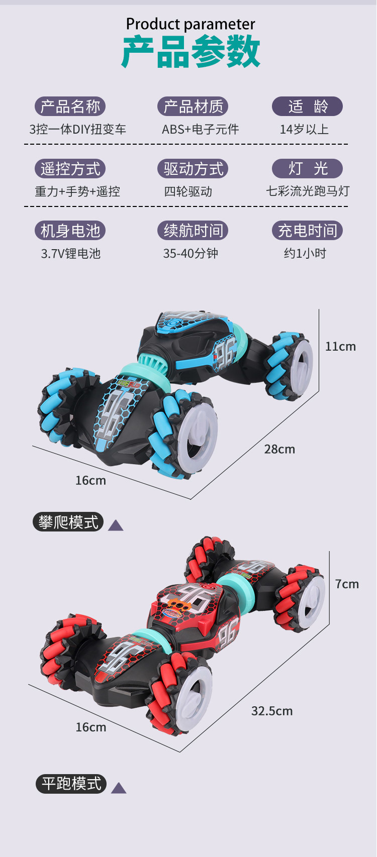 CV8818-86A 攀爬翻滚特技车 漂移麦克纳姆轮系列